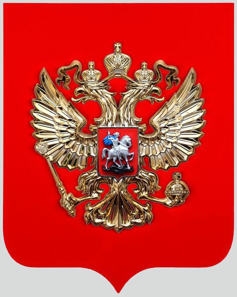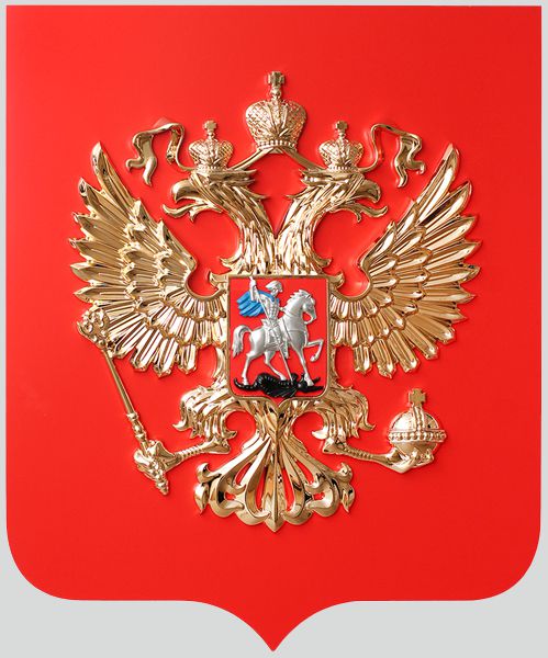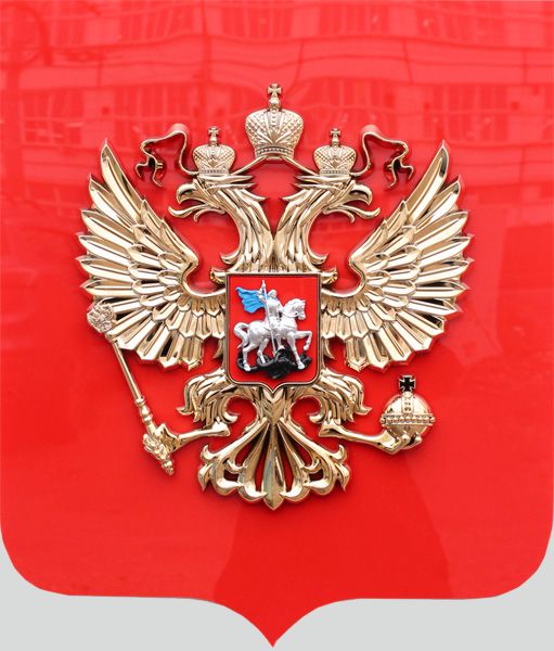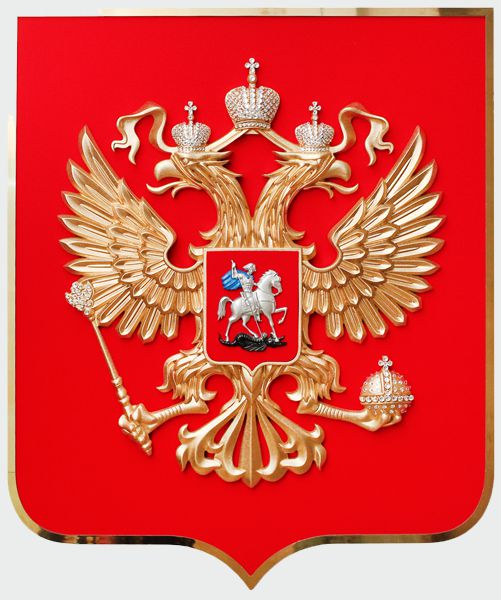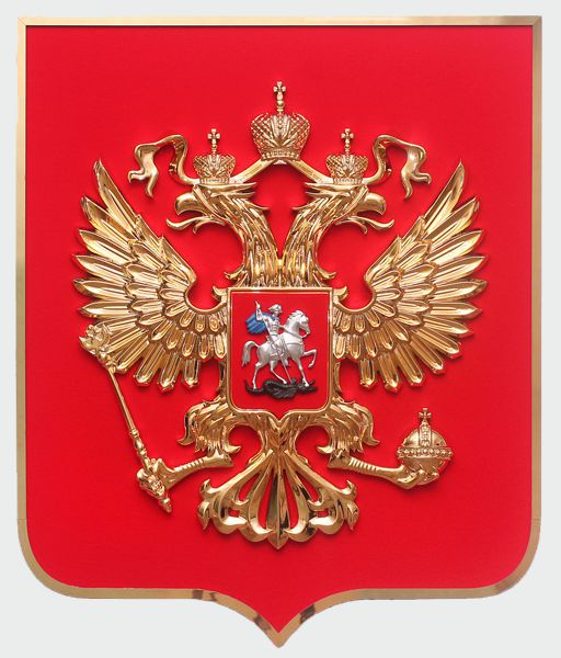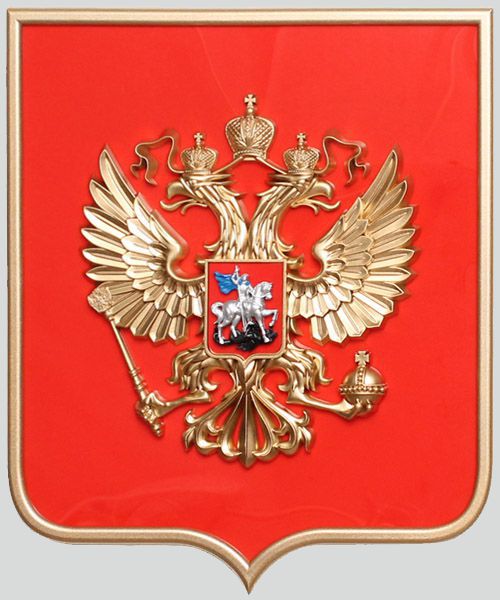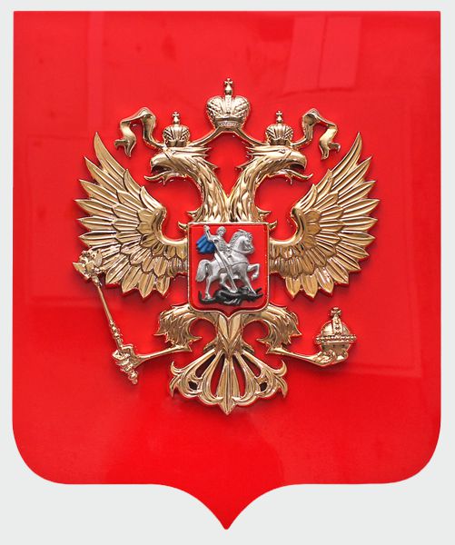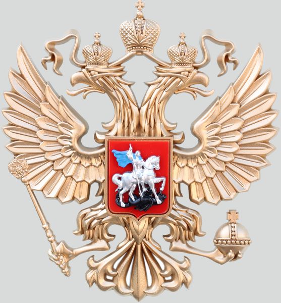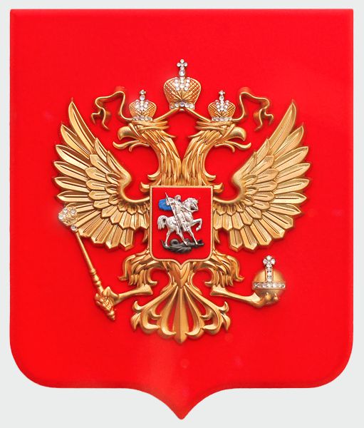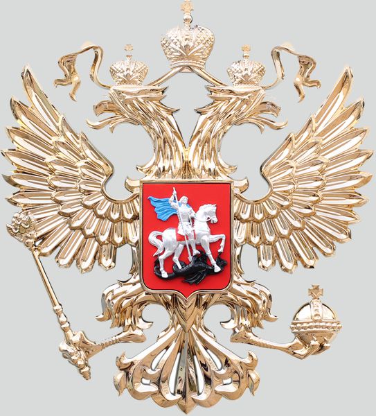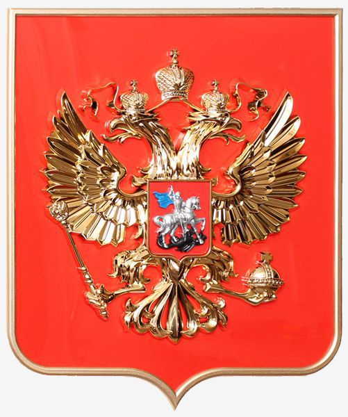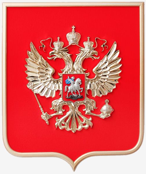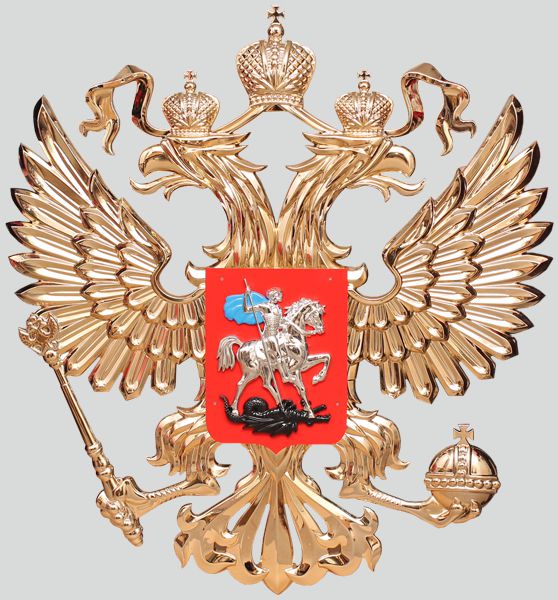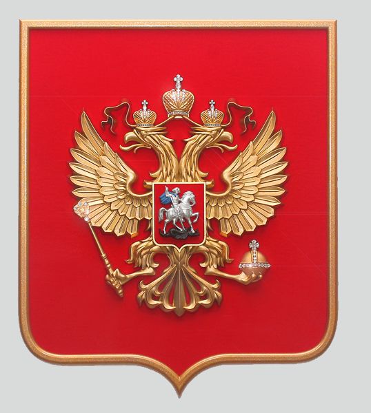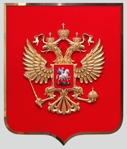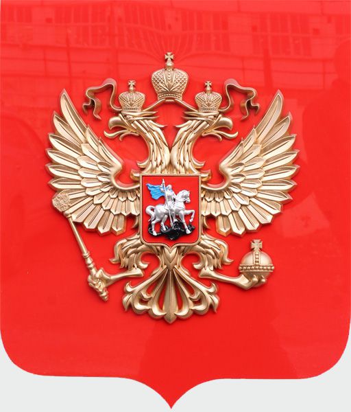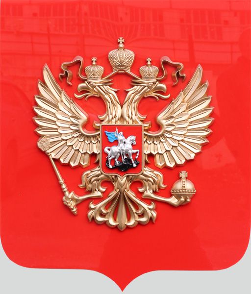 | Герб РФ 59х70см.(орёл 58х65) Щит - алюминиевый композит, без рамки Орёл: металлизация |
