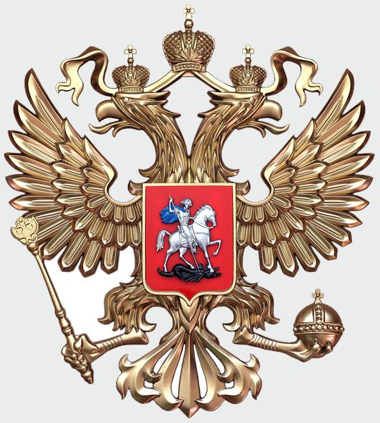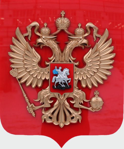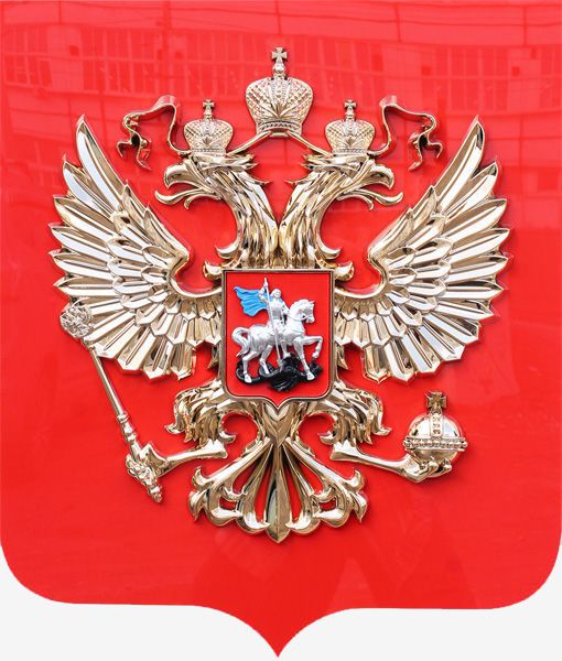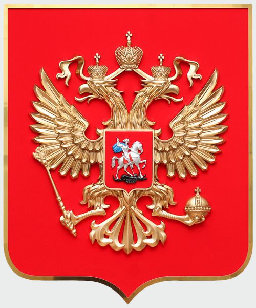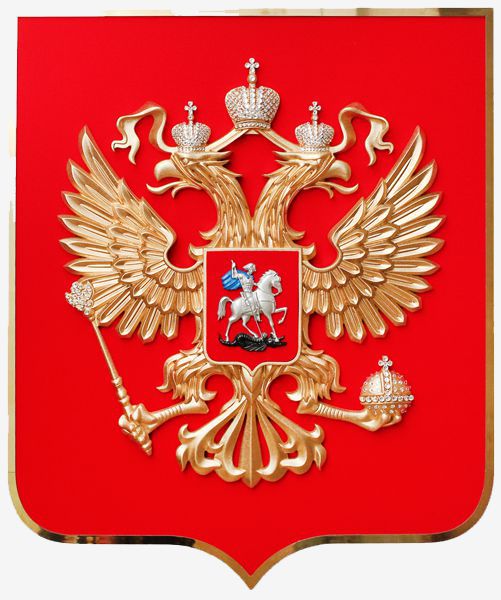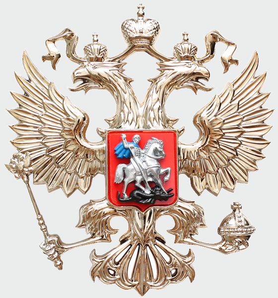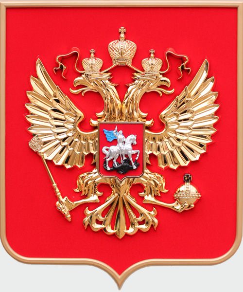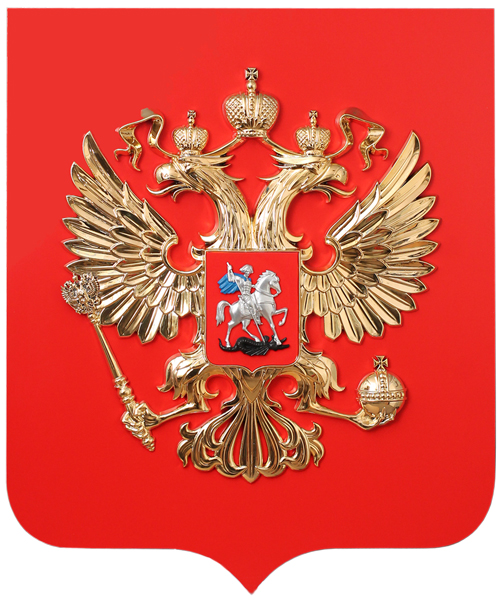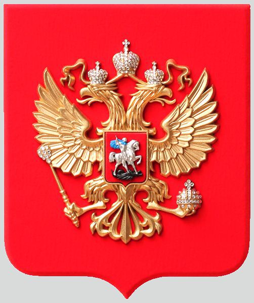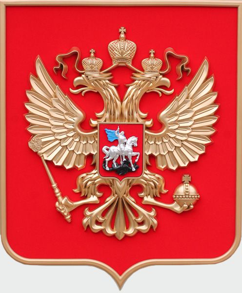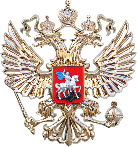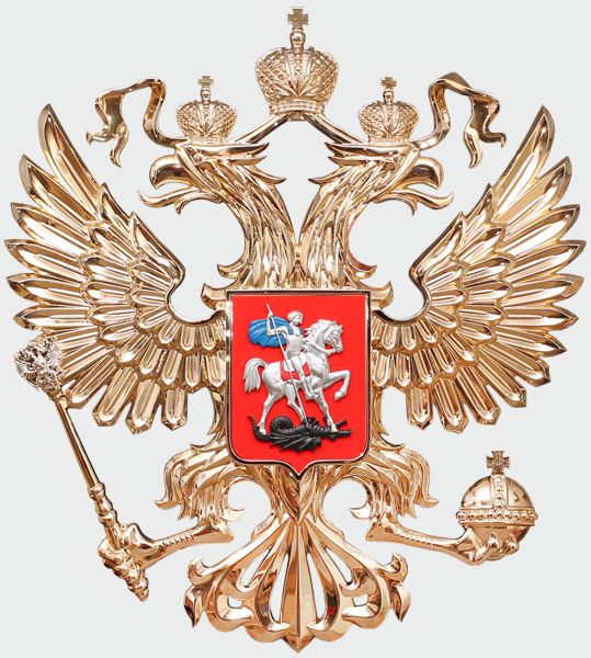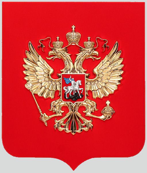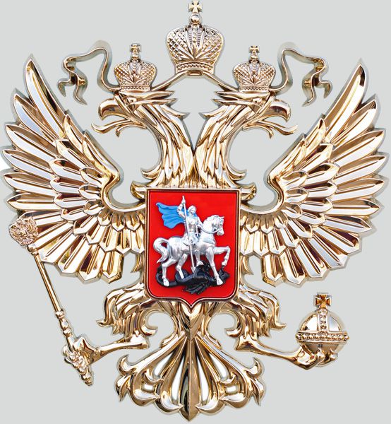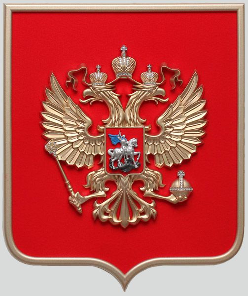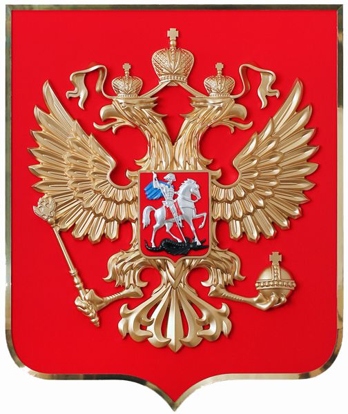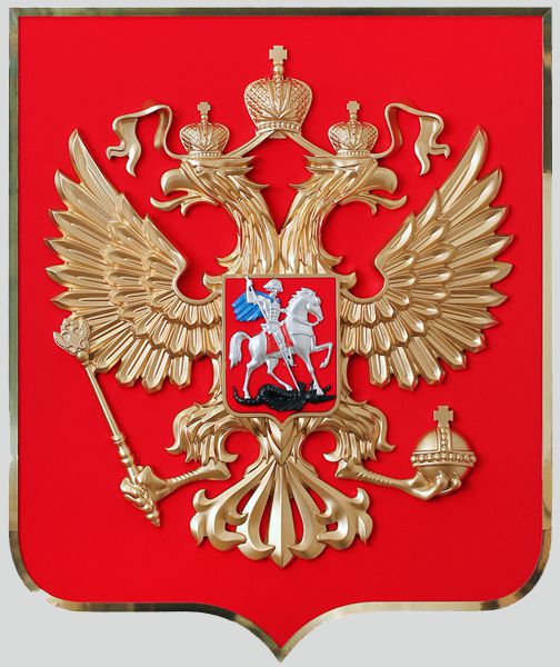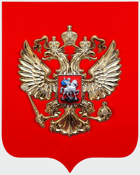 | Герб РФ 59х70см.(орёл 58х65) Щит - алюминиевый композит, без рамки Орёл: металлизация |