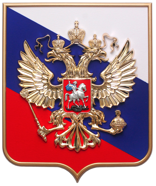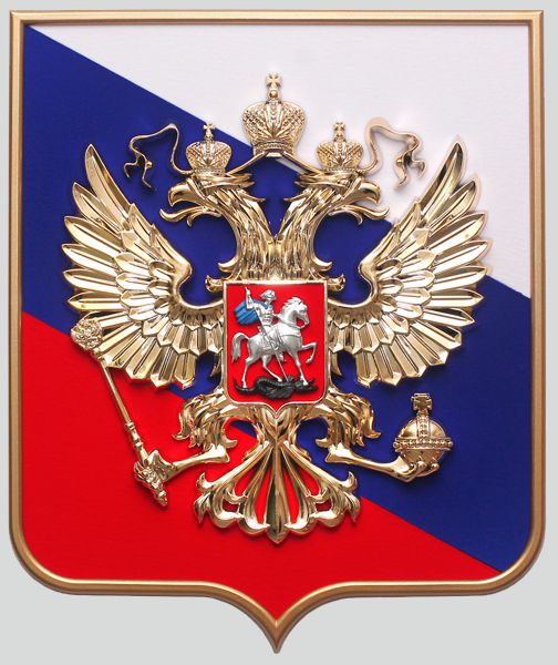 | Герб России 42х50см. НА ТРИКОЛОРЕ (орёл 28,5х31) |