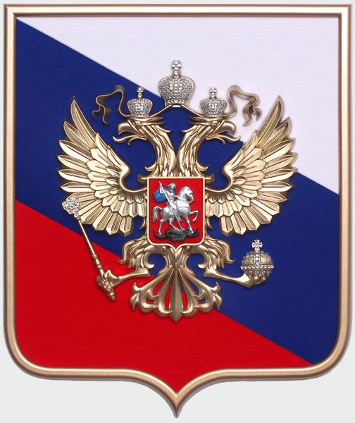 | Герб России 52х62см. НА ТРИКОЛОРЕ (орёл 40х44) |