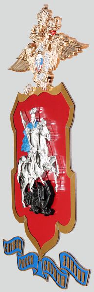 (эмблема 32 x 49 см.) Щит - МДФ флок (иск. бархат), Эмблема: краска / металлизация Рамка: пластик ("красное дерево") |